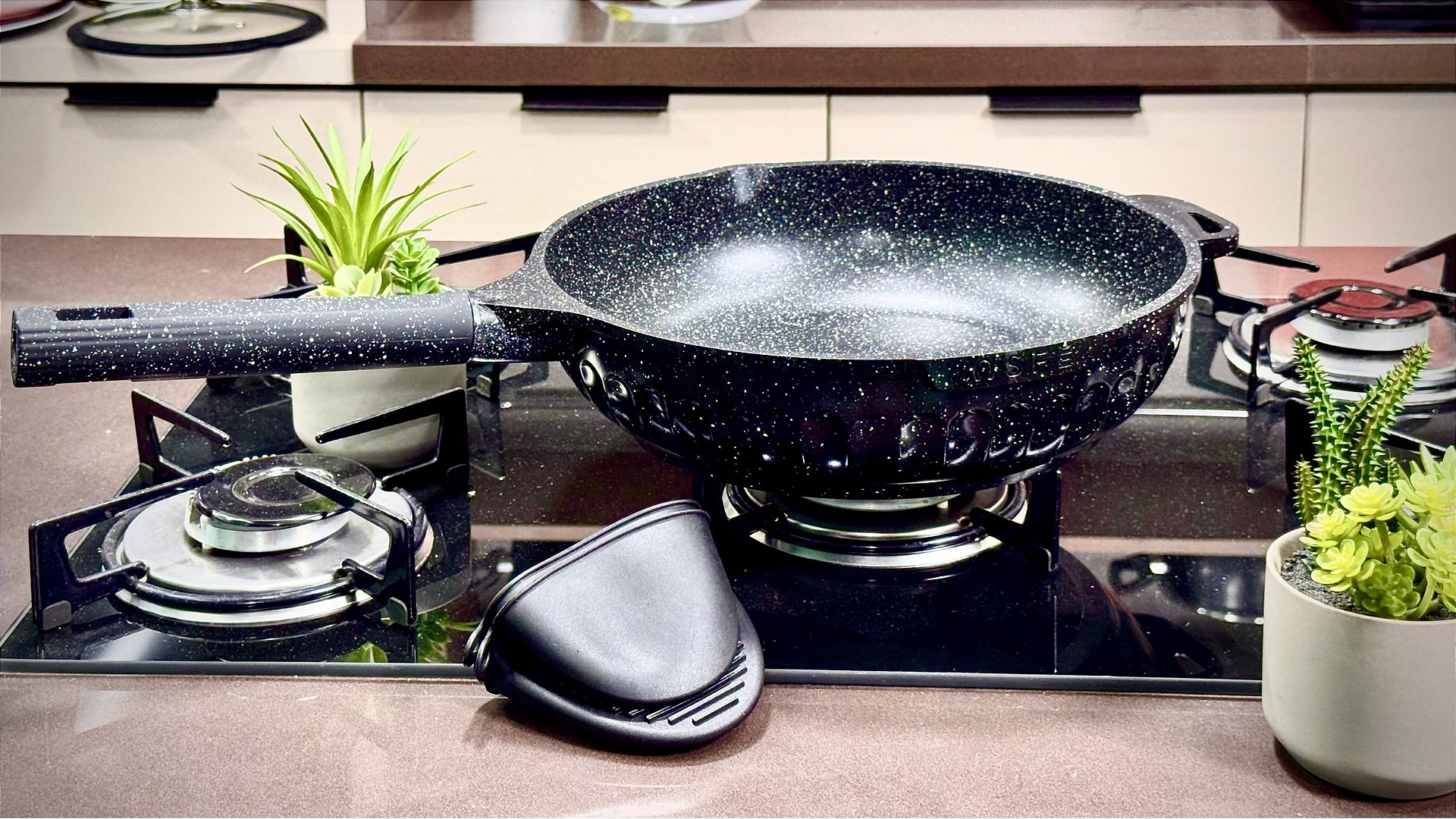 Cabo da frigideira fixo em baquelite que não aquece